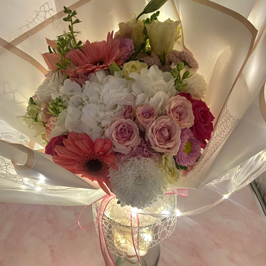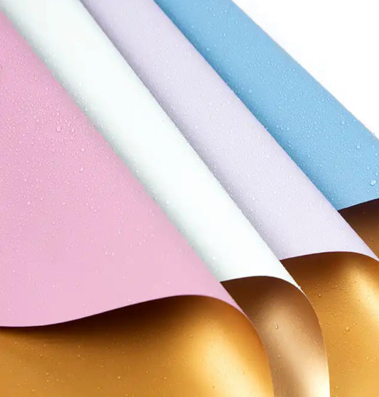 Pink Metallic Like Double Sided Beige Flower Wrapping Paper
